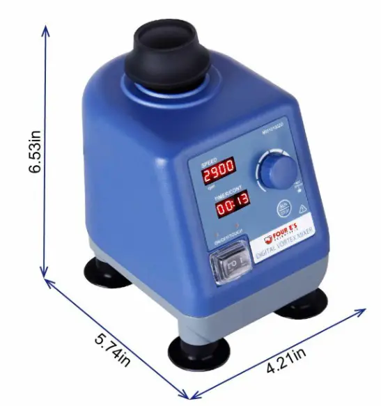 - Hız Ayarlı Dijital Four E's MI0101002D Vorteks Karıştırıcılar, Hız ve Zaman için ayrı LED ekranlar bulundurmaktadır. Four E's MI0101002D Dijital Vorteks ekranından, hız ve zaman seçimi için bir döner kadran bulunur, bu kadran hız ve zaman ayarlarının doğru şekilde kontrol edilmesini sağlar. Sağlam metalik taban ve mükemmel dinamik dengeleme, karıştırma sırasında herhangi bir hareketi ortadan kaldırır ve titreşimleri azaltır. Mikserin üç çalışma modu vardır: dokunma, zamanlı ve sürekli modlar. Vorteks üzerinde bulunan düğme ile, çalışma modunu 'dokunma'dan 'zamanlanmış' veya 'sürekli' olarak değiştilebilir. Vorteks Mikser, test tüplerini, şişeleri, beherleri ve mikrotitre plakalarını tutabilen değiştirilebilir aksesuar ekleriyle birlikte kullanılmak üzere tasarlanmıştır.